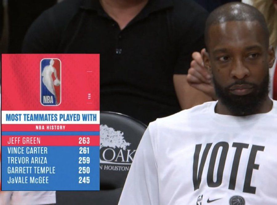 Форвард «Хьюстон Рокетс» Джефф Грин является лидером Национальной баскетбольной ассоциации (НБА) по количеству партнёров по команде. Об этом напомнили во время трансляции недавнего матча регулярного чемпионата НБА «Хьюстон» — «Нью-Йорк Никс» (109:97).