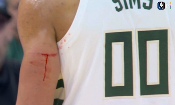 Центровой «Милуоки Бакс» Джерико Симс привлёк внимание болельщиков в социальных сетях необычной царапиной, которую заметили во время матча НБА на левой руке баскетболиста. По форме повреждение напоминает букву «T».