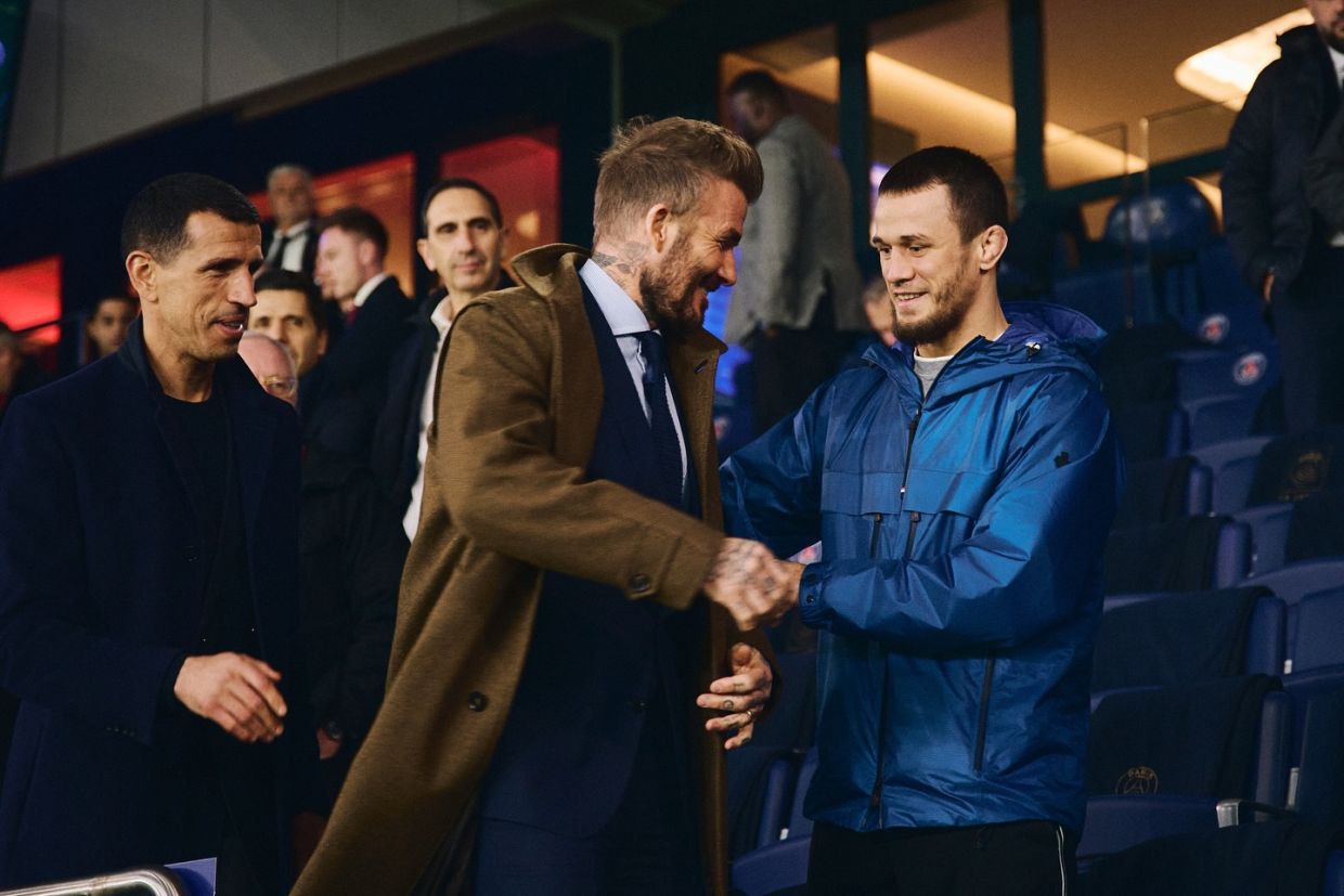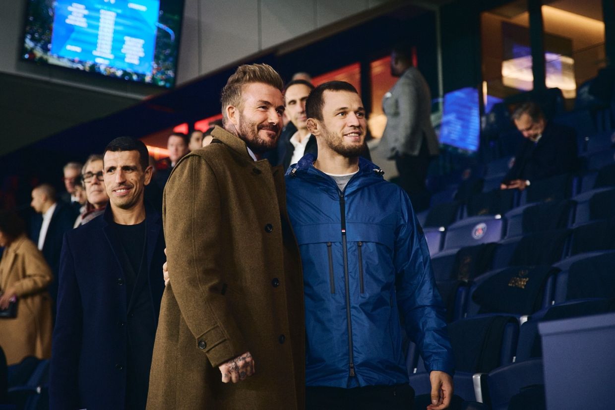 Действующий обладатель чемпионского титула Bellator в лёгкой весовой категории (до 70 кг) россиянин Усман Нурмагомедов разместил новый пост на своей странице в социальных сетях, где поделился с подписчиками свежей фотографией. Нурмагомедов показал, как встретился с прославленным британским футболистом Дэвидом Бекхэмом в первом матче 1/8 финала Лиги чемпионов УЕФА между «Пари Сен-Жермен» и «Ливерпулем».