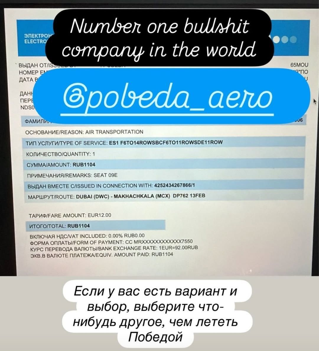«Победа» — это чепуха номер один в мире среди компаний. Если у вас есть вариант и выбор, выберите что-нибудь другое, чем лететь «Победой», — написал Махачев на своей странице в социальной сети.