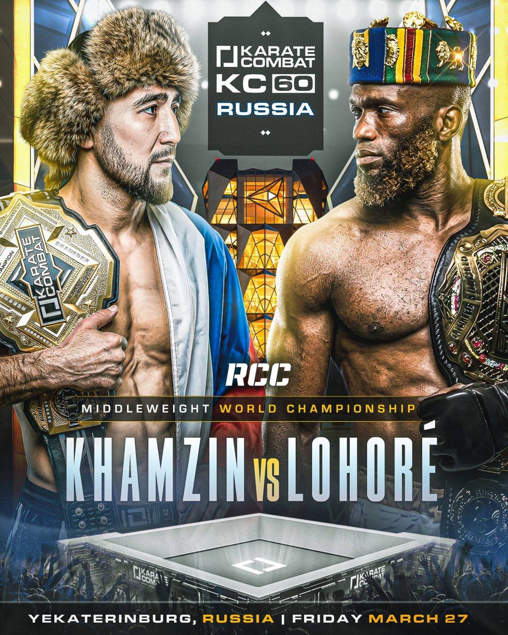 Чемпион Karate Combat Ильяс Хамзин проведёт первую защиту титула против действующего обладателя титула Brave FC в полусреднем весе француза Алекса Лоорэ. Их бой пройдёт 27 марта в категории до 84 кг на турнире RCC и Karate Combat в Екатеринбурге и станет главным событием вечера. Об этом информирует пресс-служба турнира.