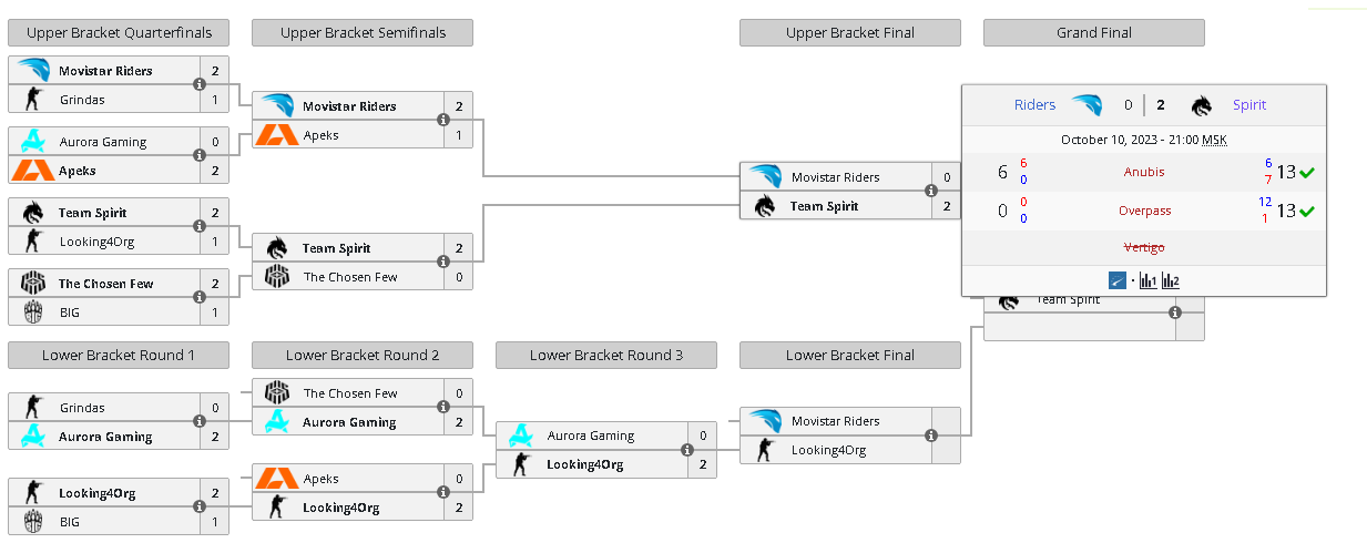 В рамках отборочных к ESL Challenger Jonköping 2023 пятёрка Леонида Chopper Вишнякова победила испанскую Movistar Riders, в рамках второй карты не проиграв ни одного раунда — 2:0 (13:6, 13:0). 11 октября в 21:00 «драконы» сыграют в финале турнира за выход в финальную часть.