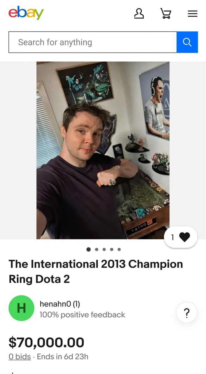 На eBay появился лот с чемпионским перстнем Хенрика AdmiralBulldog Анберга. Шведский киберспортсмен получил этот трофей за победу на турнире The International 2013 по Dota 2 в составе команды Alliance.