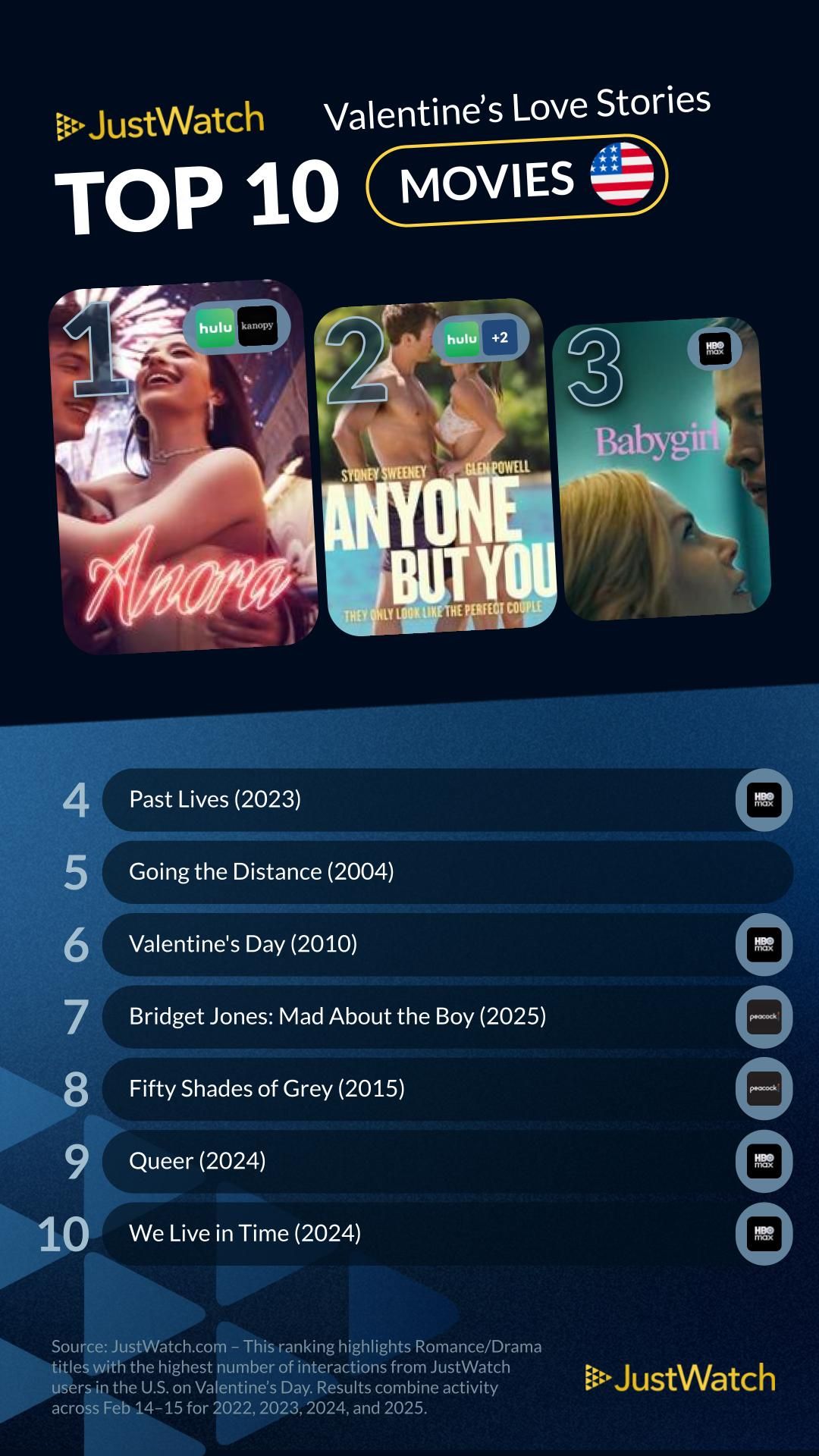 10 самых популярных фильмов на День святого Валентина от JustWatch