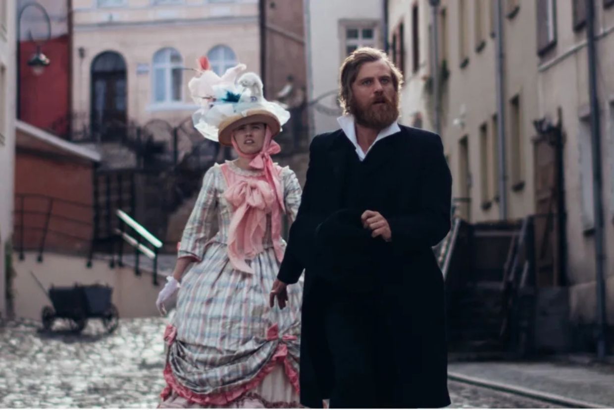 Кинокомпания CAA Media Finance представила первый кадр фильма «Идиот(ы)». На нём показаны Джонни Флинн («Рипли») в роли легендарного писателя Фёдора Достоевского и Эйми Лу Вуд («Белый лотос») в роли его супруги Анны.