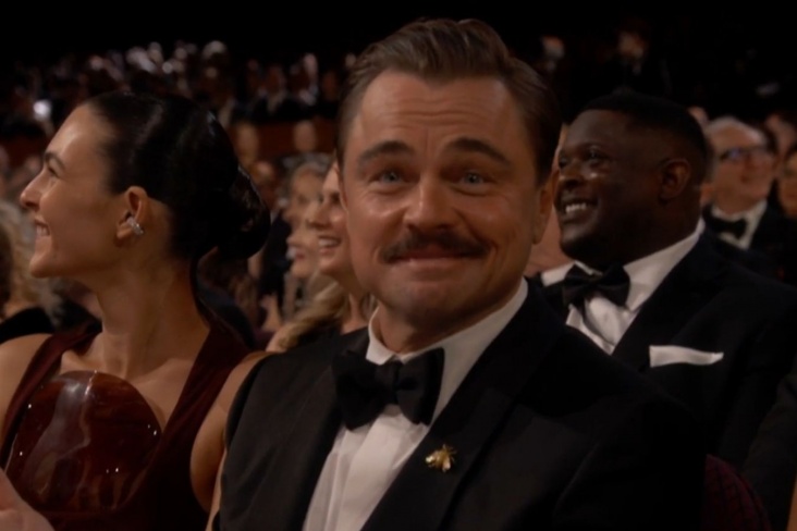 Перед этим на экране показали другие известные мемы с Ди Каприо, среди которых кадры из «Великого Гэтсби», «Однажды в Голливуде» и «Джанго освобождённый».