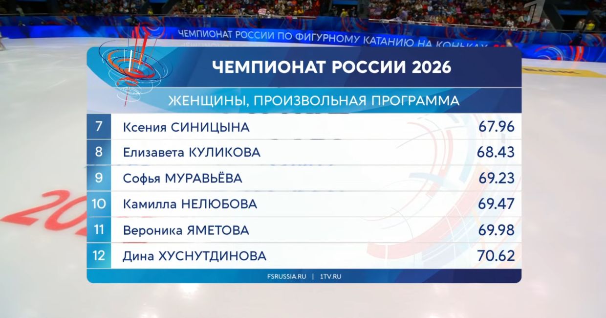 В бой вступает Софья Муравьёва. Из хорошего — вице-чемпионка России прошлых лет в нынешнем межсезонье поменяла тренерскую группу, переехала из Москвы в Санкт-Петербург, съездила на сборы в Европу к Бенуа Ришо, но из плохого — так и не восстановила тройной аксель и не перестала занимать четвёртые места на соревнованиях. После короткой программы она даже далеко не на четвёртом, но в любом случае будет стараться улучшить свои результаты.