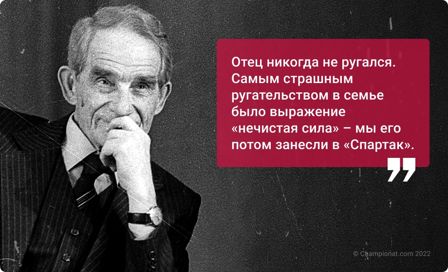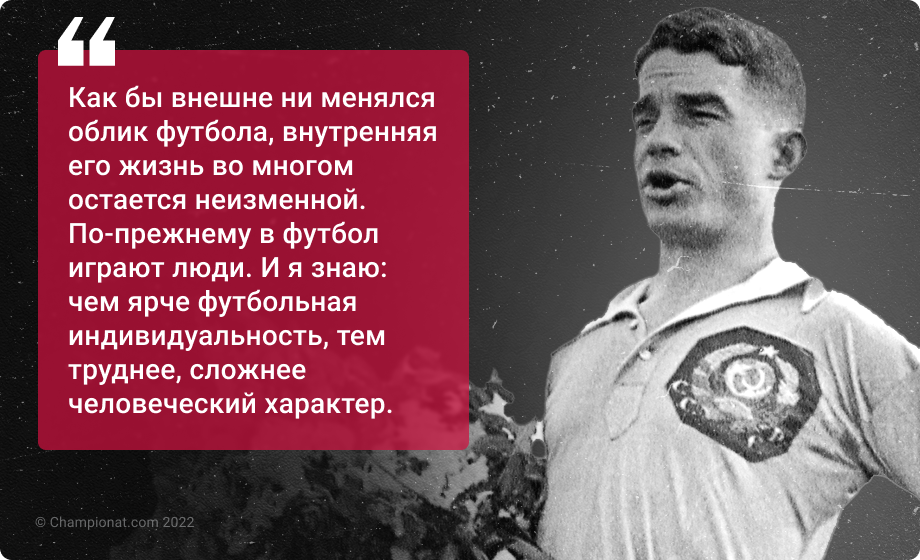 «Сначала человек изобрёл колесо, а потом мяч. Тот самый мяч, который привёл к тому, что мы были арестованы. Два года я провёл во внутренней тюрьме в здании на Лубянке, а потом 10 лет болтался по лагерям. Футбол нас в эту беду всадил, но вместе с тем – футбол нам помог в этом омуте не утонуть.