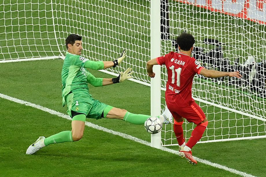 ❗ Его вообще можно пробить? Салах нанёс шикарный обводящий удар в дальний угол, но Куртуа в красивом прыжке потащил мяч.