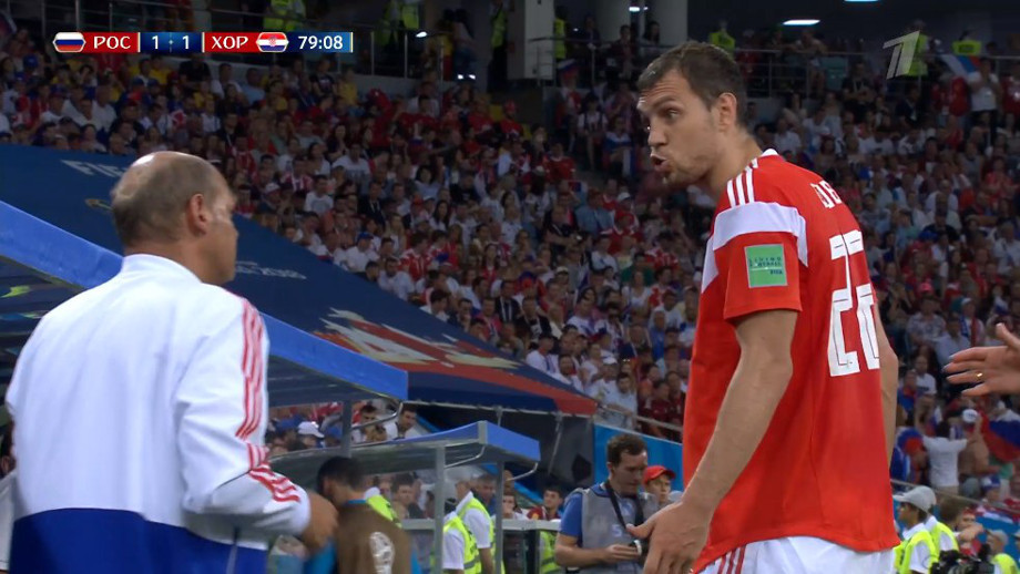 Во втором тайме главный тренер национальной команды России Станислав Черчесов принял решение заменить форварда Артёма Дзюбу. Вместо нападающего в игру на 79-й минуте вступил полузащитник Юрий Газинский.