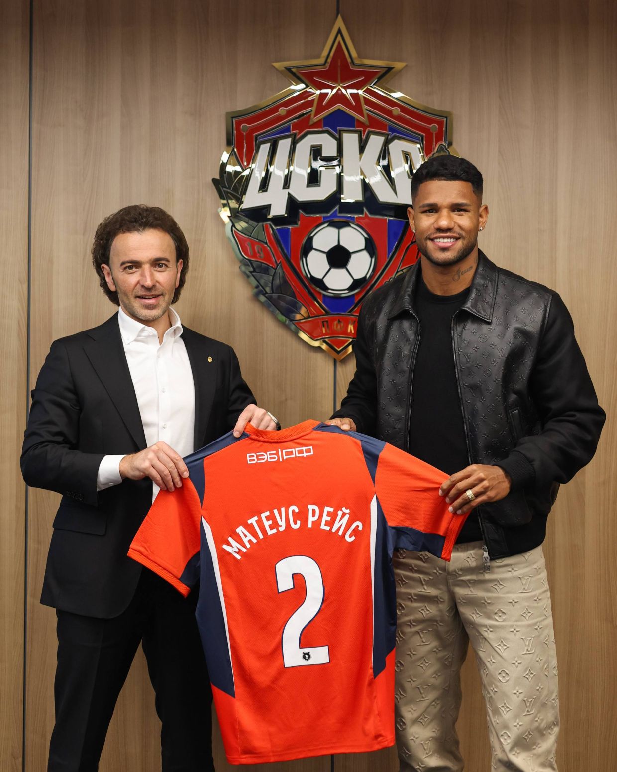 Пресс-служба ЦСКА в телеграм-канале опубликовала совместную фотографию генерального директора клуба Романа Бабаева и новоиспечённого защитника команды Матеуса Рейса.