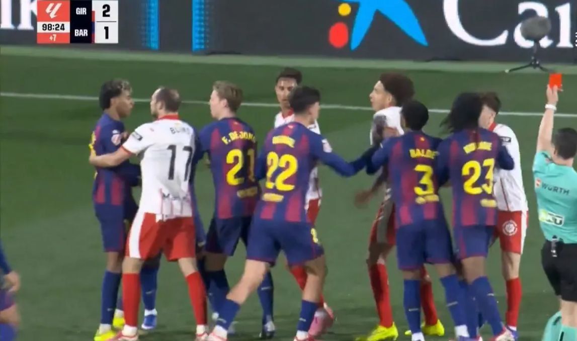 Нападающий «Барселоны» и национальной команды Испании Ламин Ямаль попытался завязать потасовку, агрессивно набросившись на испанского полузащитника «Жироны» Хоэля Року, который мгновением ранее совершил грубый подкат на 18-летнем футболисте.