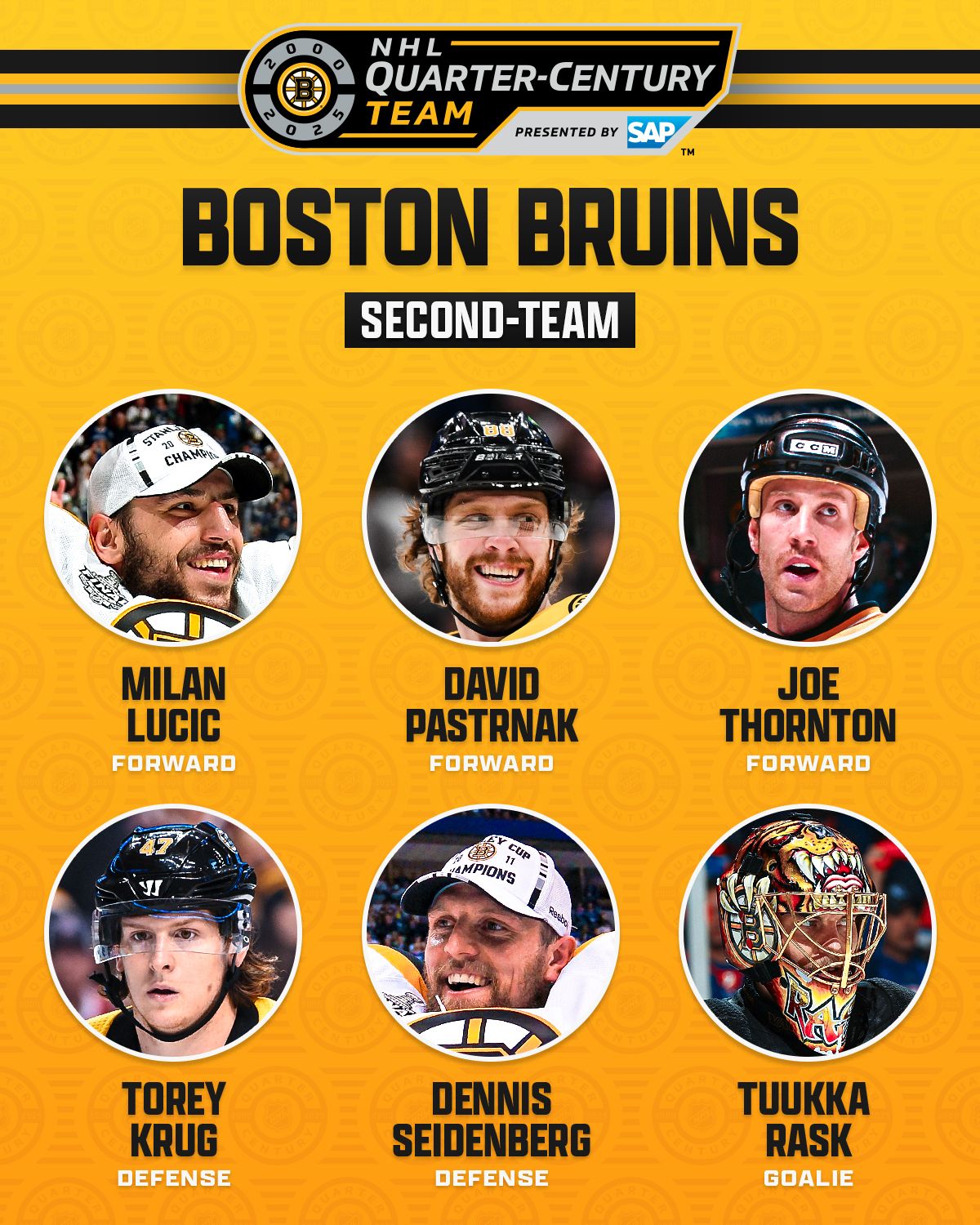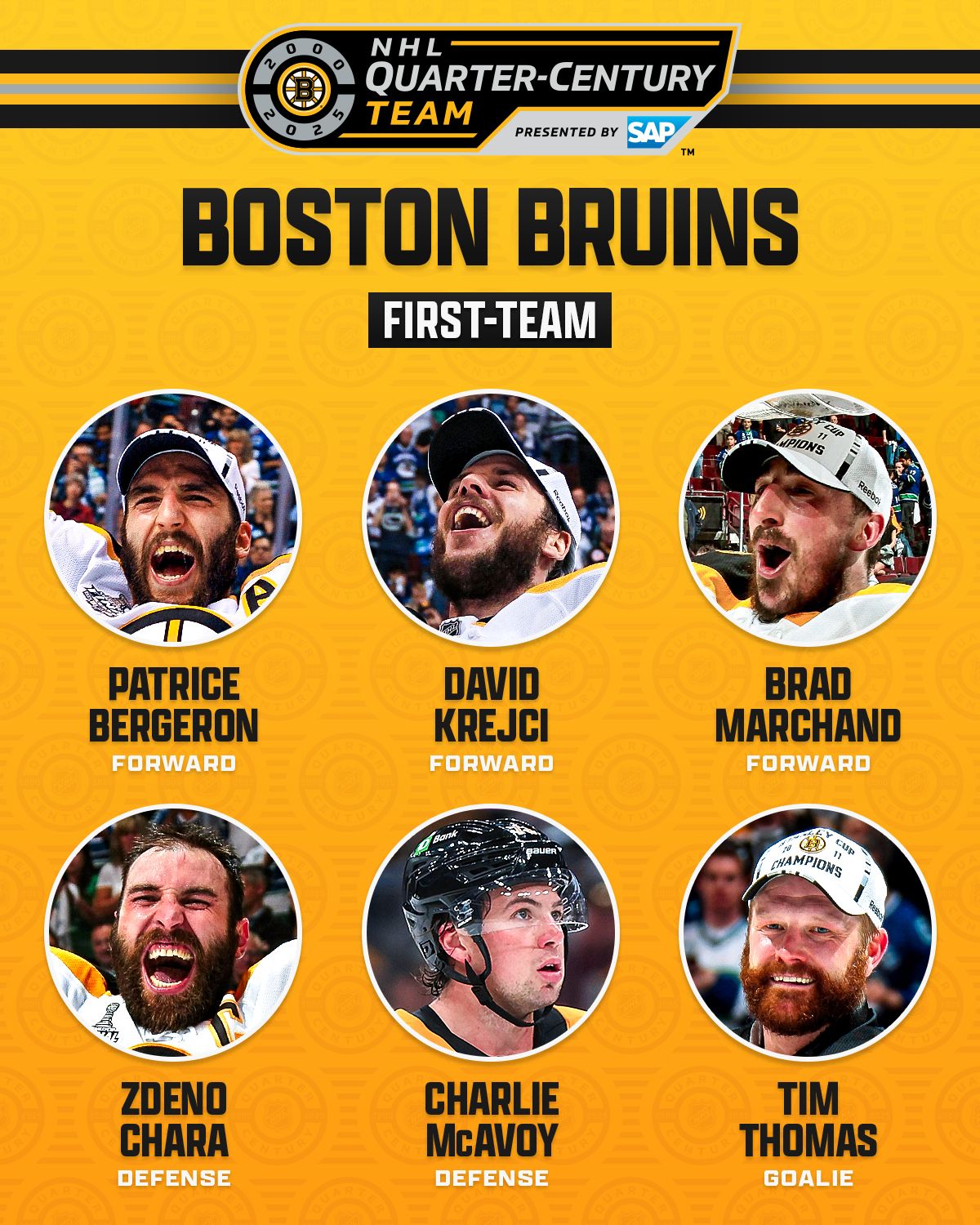 Пресс-служба НХЛ представила две сборные лучших игроков «Бостона» в XXI веке. Первый и второй составы каждой команды выбирались представителями СМИ, бывшими игроками и руководителями, которые были связаны с конкретной командой. Кандидатами на отбор стали игроки, которые выступали за соответствующие клубы с 1 января 2000 года.