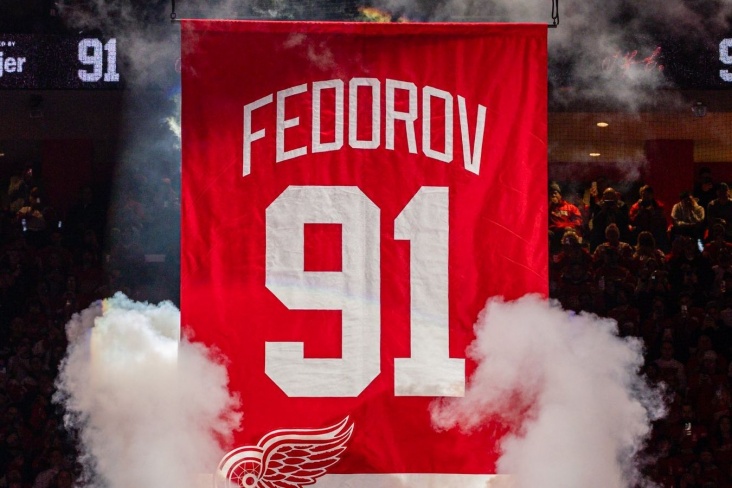 Клуб Континентальной хоккейной лиги ЦСКА поздравил Сергея Фёдорова с выводом из обращения «Детройт Ред Уингз» 91-го номера.