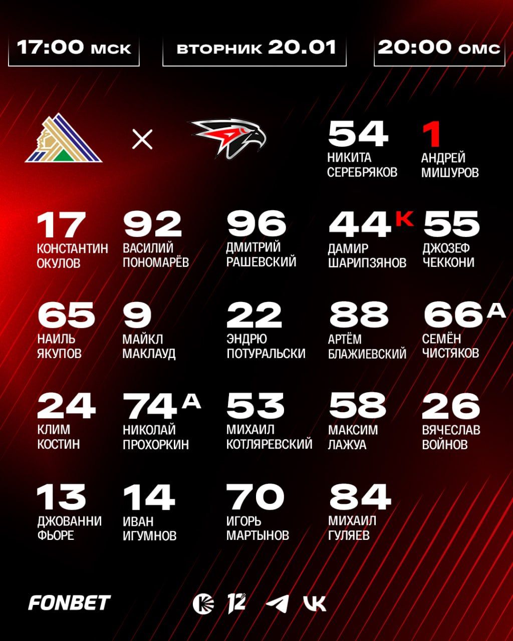 Сегодня, 20 января, в Уфе во дворце спорта «Уфа-Арена» пройдёт очередной матч регулярного чемпионата Континентальной хоккейной лиги (КХЛ) между местным «Салаватом Юлаевым» и «Авангардом» из Омска. Встреча начнётся в 17:00 мск. «Чемпионат» проведёт текстовую онлайн-трансляцию игры.