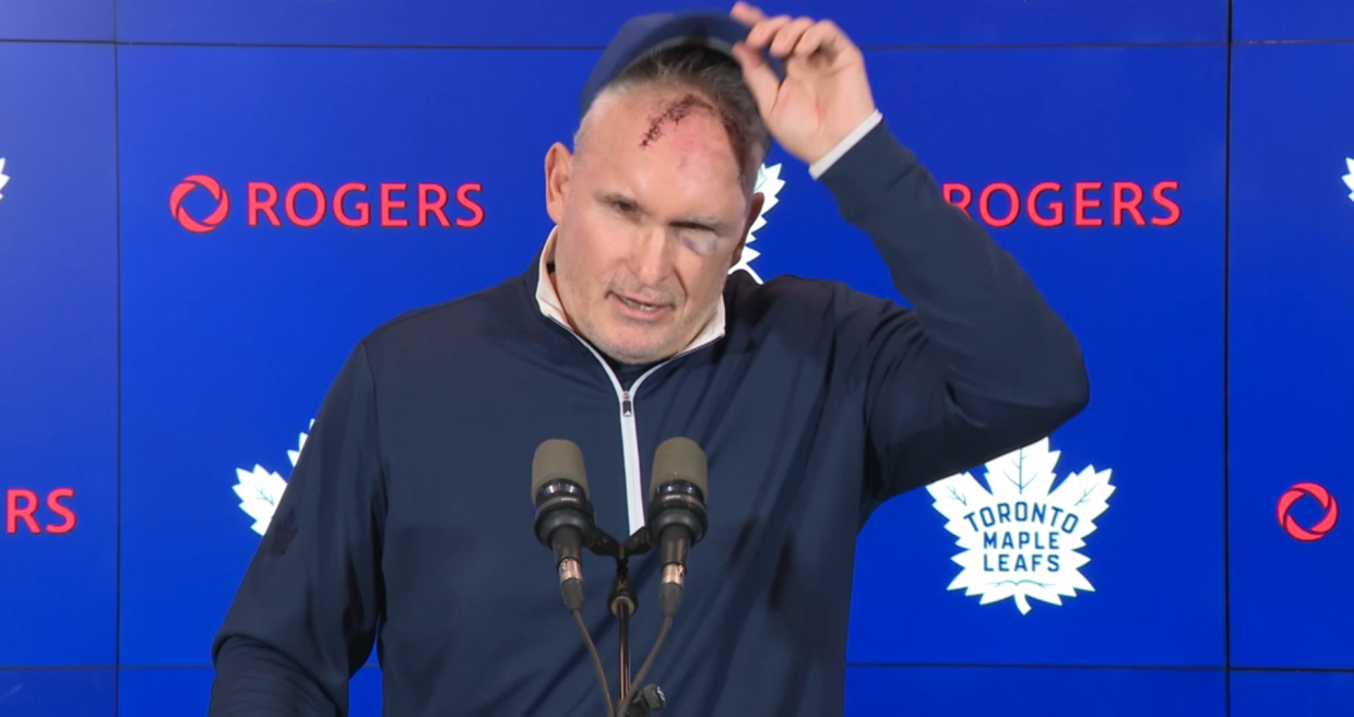 Главный тренер «Торонто Мэйпл Лифс» Крэйг Берюбе получил травму в спортзале. Теперь у специалиста синяк под глазом и несколько швов на лбу.
