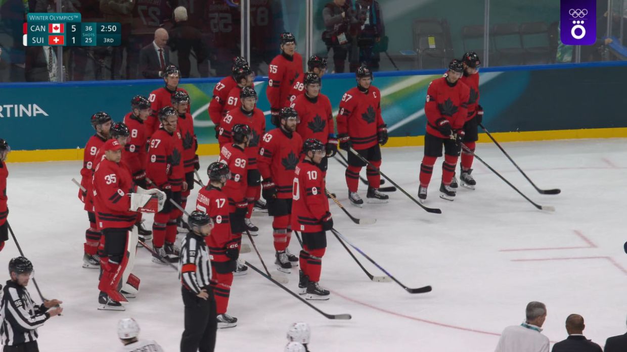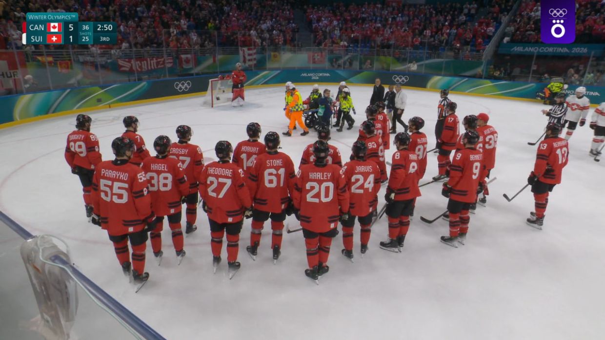 Все игроки сборной Канады вышли на лёд в момент транспортировки за пределы площадки получившего серьёзную травму нападающего сборной Швейцарии Кевина Фиалы.