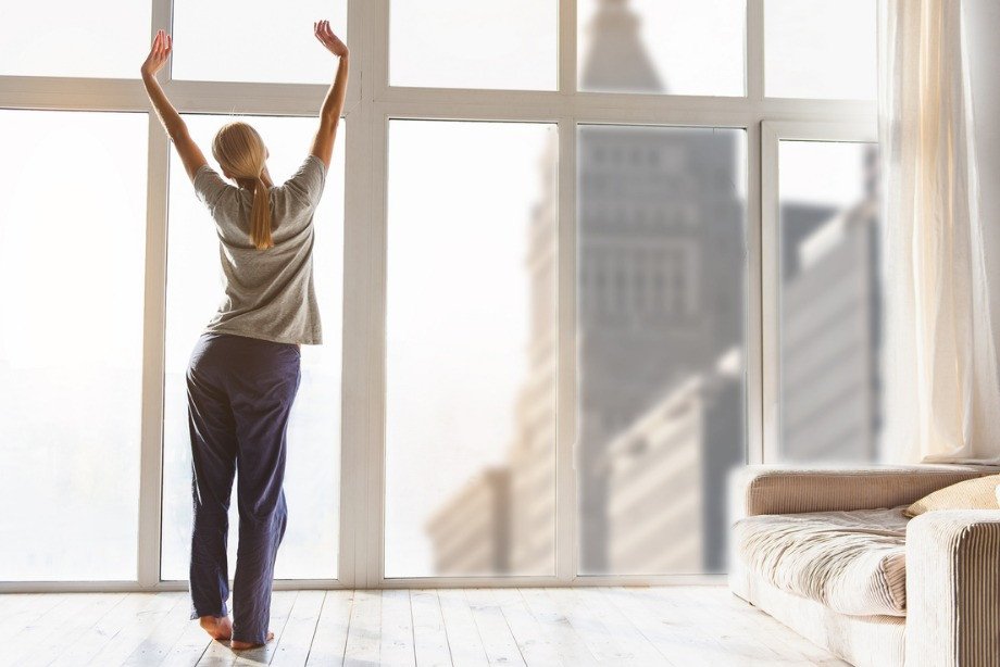 На вдохе вытяните руки над головой и хорошо потянитесь, напрягая всё тело от пальцев рук до кончиков ног. Почувствуйте, как растягиваются и расправляются мышцы. На выдохе медленно опустите руки вдоль тела и расслабьтесь.