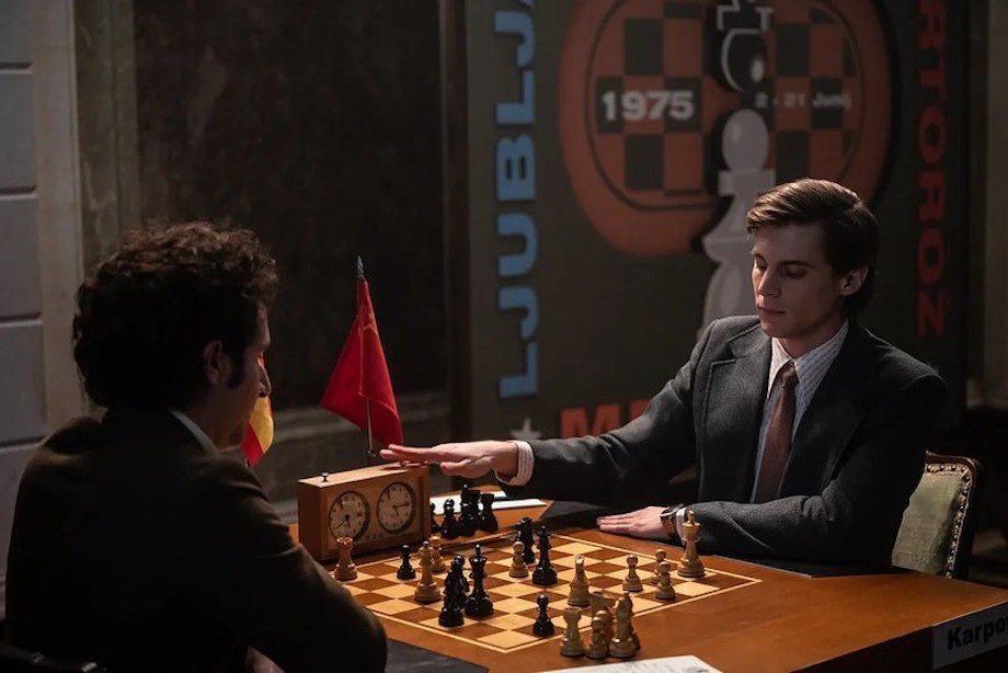 – Да. Я смотрел документальный фильм. У него такой холодный, отстранённый, рыбий взгляд. Там можно утонуть или заморозиться. Мне хотелось это передать – если я смотрю, то вам будет холодно и страшно. Я старался во время съёмки находиться в состоянии, будто отрезан от реальности и живу в мире 64 клеток. Скажете мне что-то не то – сразу этот взгляд. Холодный расчётливый убийца. Только не с ножом, а за доской. Да, в какой-то момент светлый, ранимый и добрый, но в то же время упрямый в плане спортивного интереса.