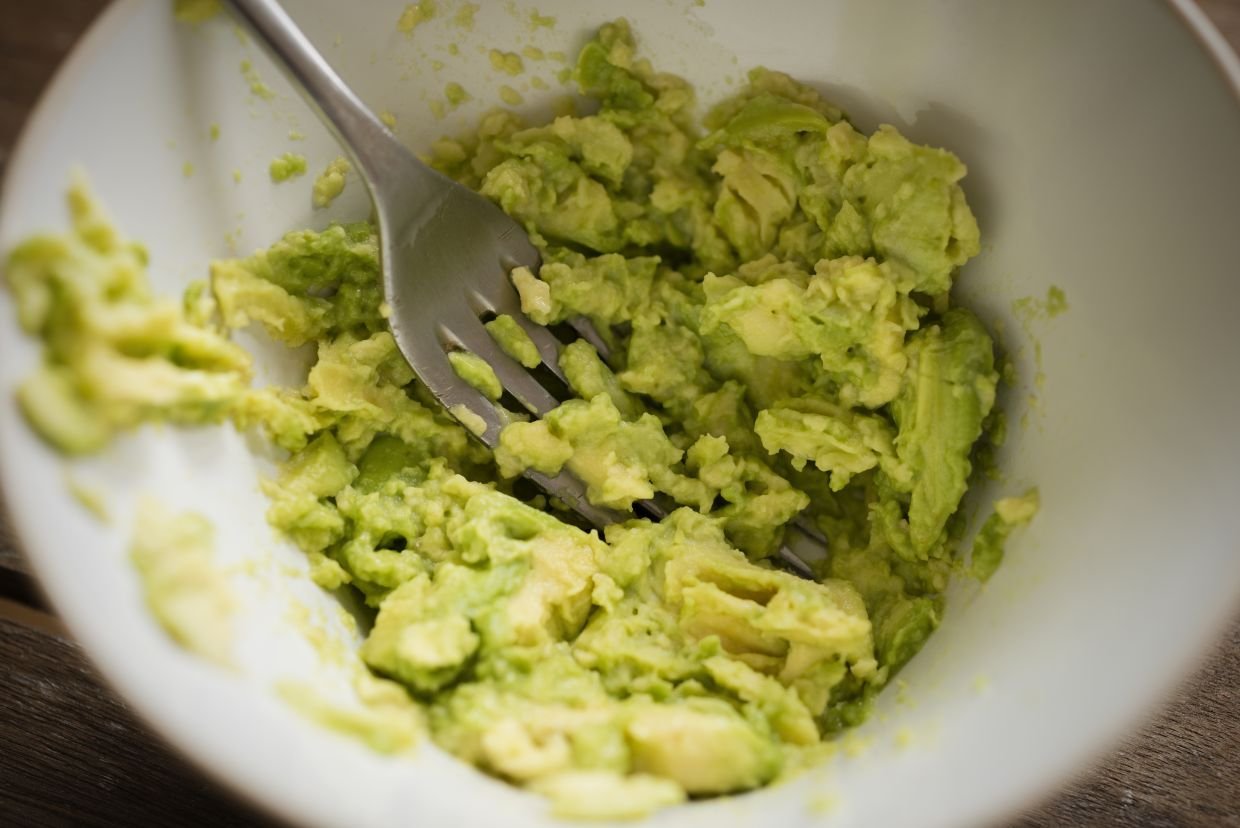 1. Помойте авокадо, очистите, уберите косточку, разомните мякоть вилкой в пасту.