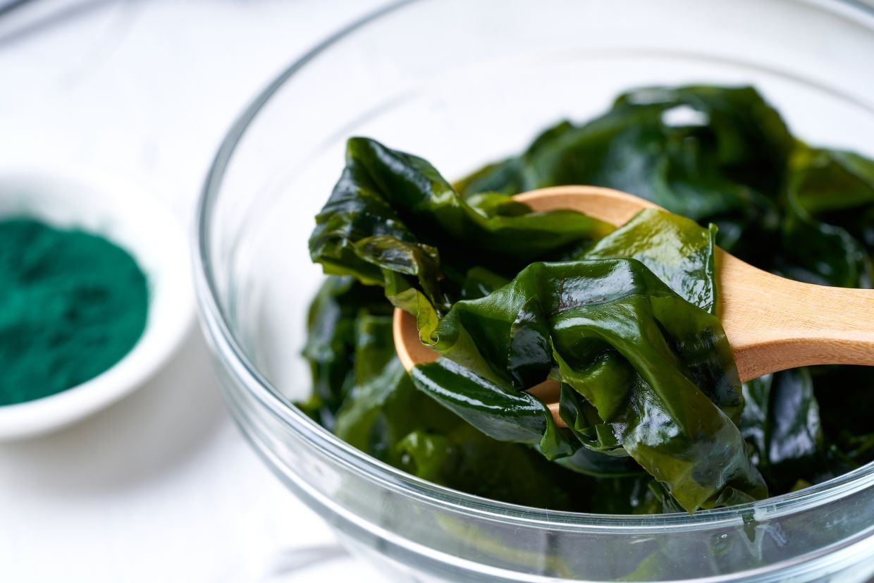 Вместо сухих водорослей вакаме можно взять уже готовые салаты с водорослями или морской капустой.
