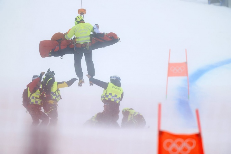 К спортсмену поспешили медики. После первичного осмотра Мёллера уложили в специальную люльку и эвакуировали с горы на вертолёте.