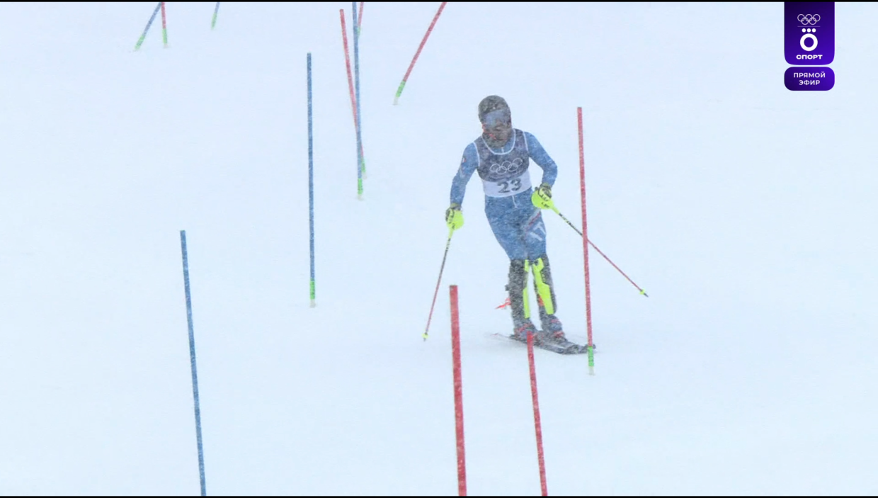 У мужчин стартовала первая попытка в слаломе. Семён Ефимов здесь выступит под 42-м номером.