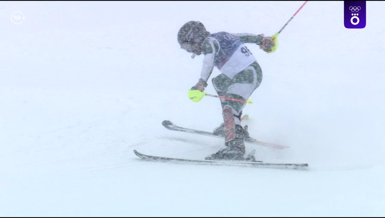 В плохих погодных условиях проходит слалом: уже четвёртый сход из 11 стартовавших. Трассу накрыло плотным снегом, видимость минимальная. Так что здесь может быть сенсация.