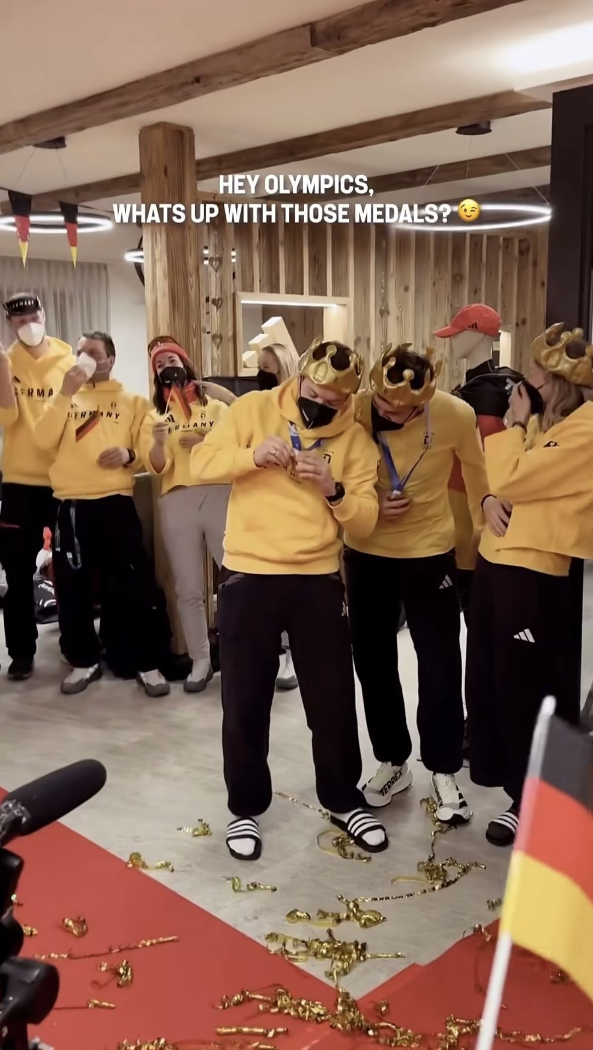 8 февраля во время празднования третьего места в смешанной эстафете медаль немецкого биатлониста Юстуса Штрелова оторвалась от ленты и упала на землю. Эпичными кадрами в социальных сетях поделилась Немецкая лыжная ассоциация.