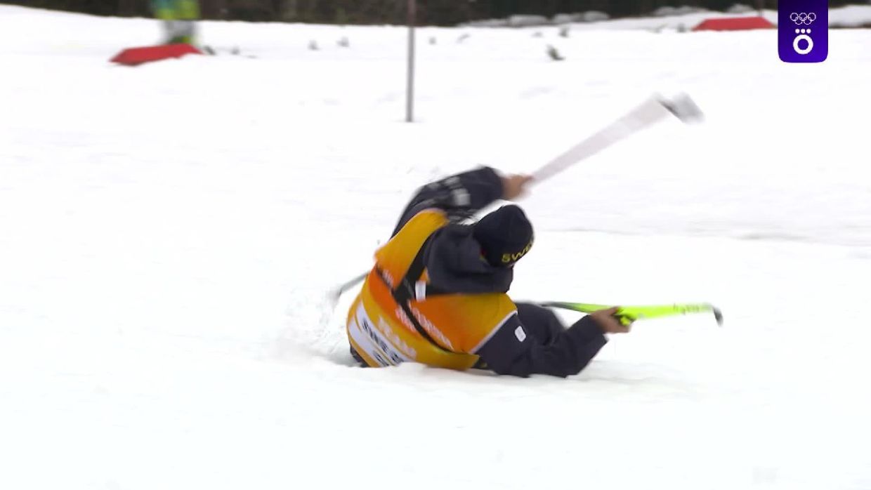 Также на дистанции упал тренер сборной Швеции, который пытался передать Андерссон лыжу для смены.