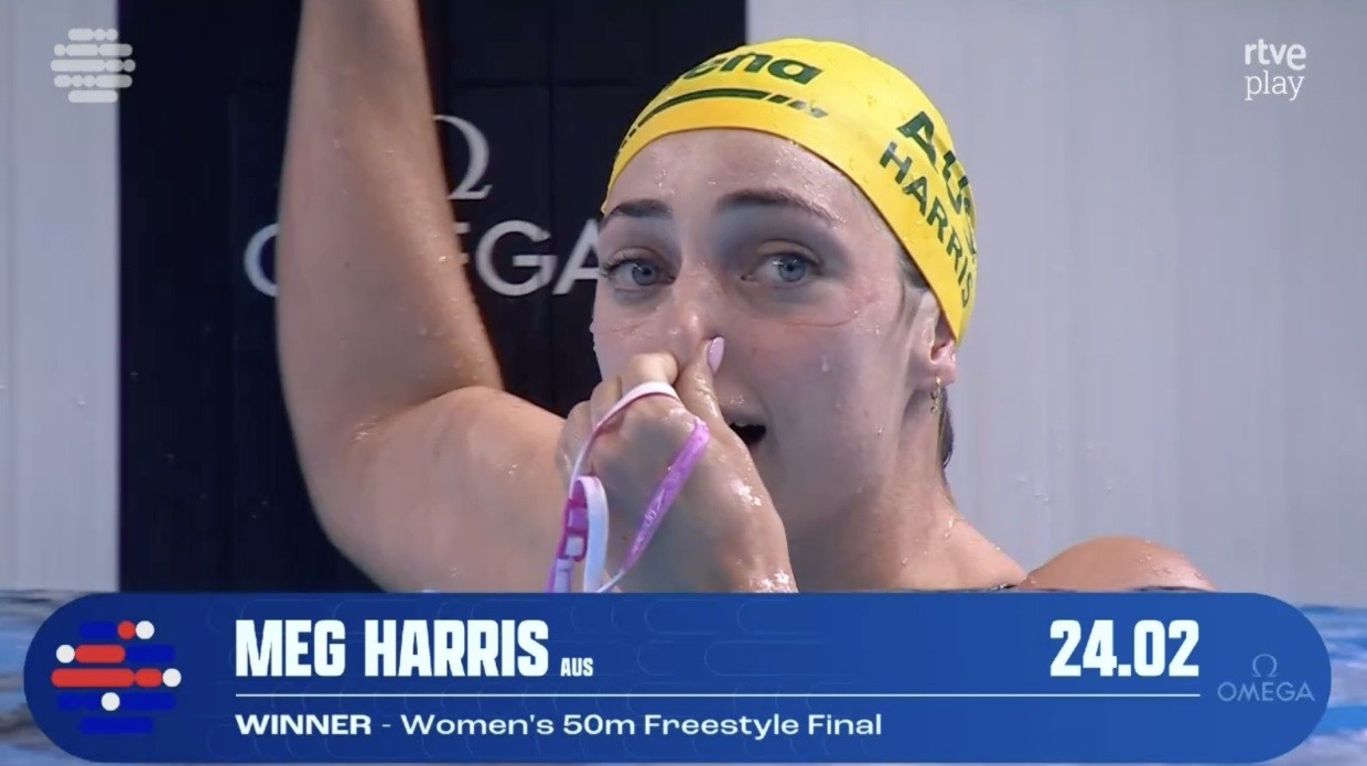 Австралия вновь уделала США, но теперь на 50 м вольным стилем у женщин. Победу у Гретчен Уолш здесь отобрала Мэг Харрис и две китаянки.