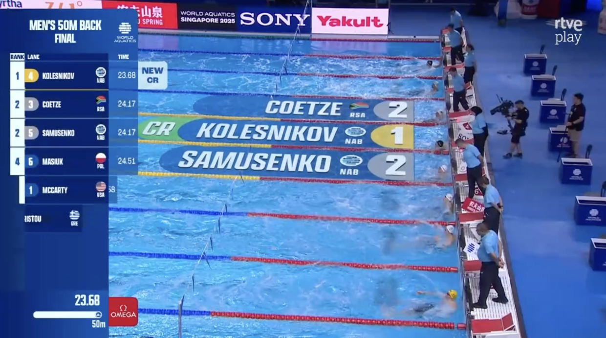 Это финал 50 м на спине. Грядёт большая драка!