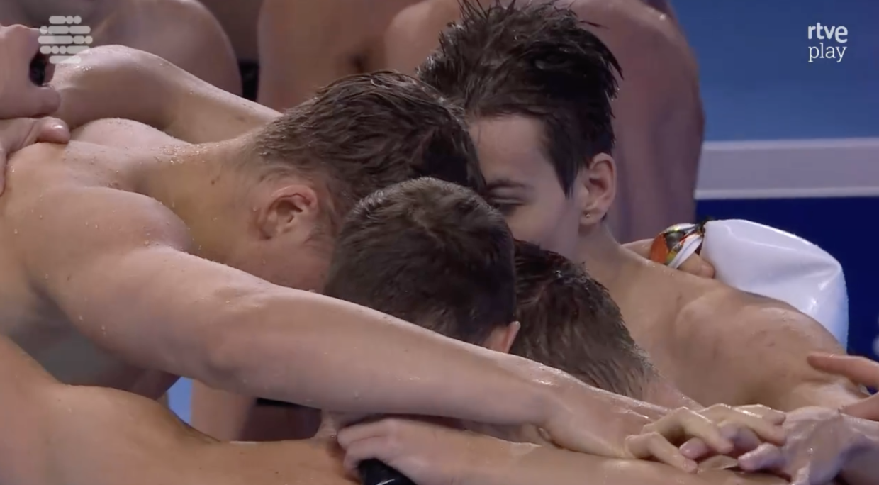 В эстафете 4х100 м комплексом у мужчин Россия вышла в финал со вторым временем, проиграв США 0,4.