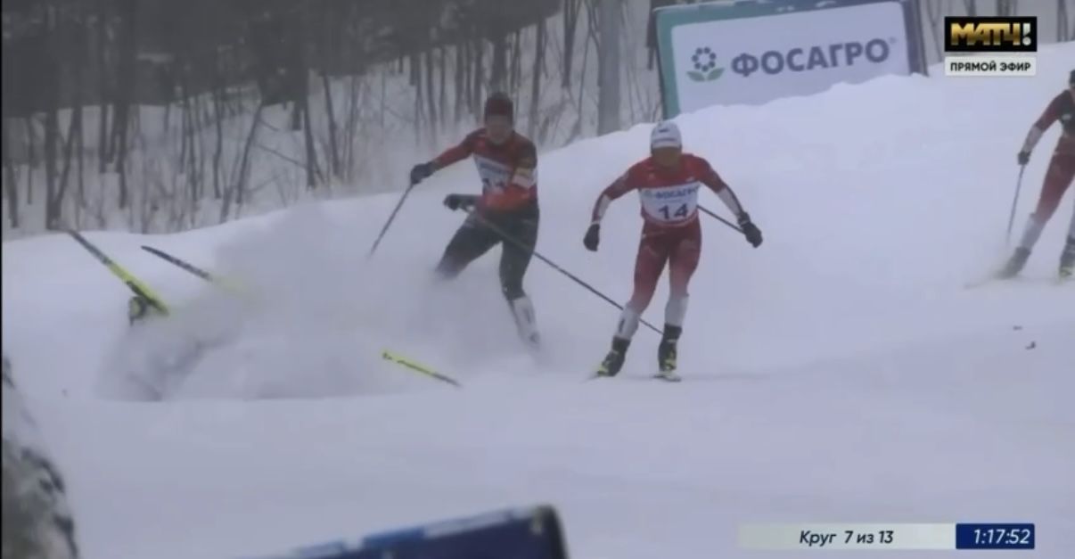 Две российские лыжницы, Арина Кусургашева и Алина Кудисова, упали во время масс-старта на 50 км на чемпионате России — 2026, который проходит в Южно-Сахалинске, из-за выбежавшей собаки.